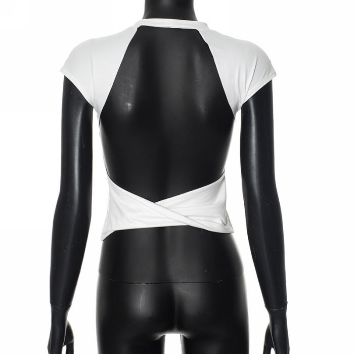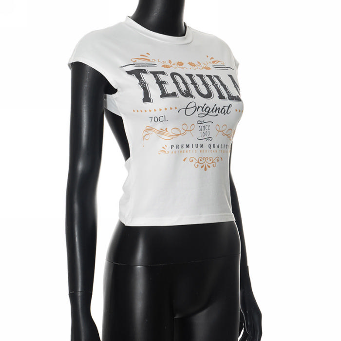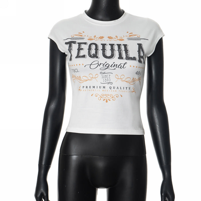 (Real Image)2024 Styles Women Printed American-Style Bodycon Crop T-ShirtSKU: #CF92138-1