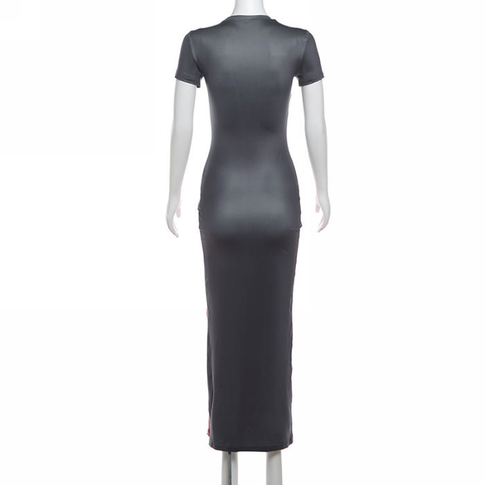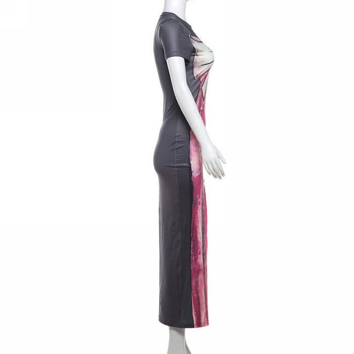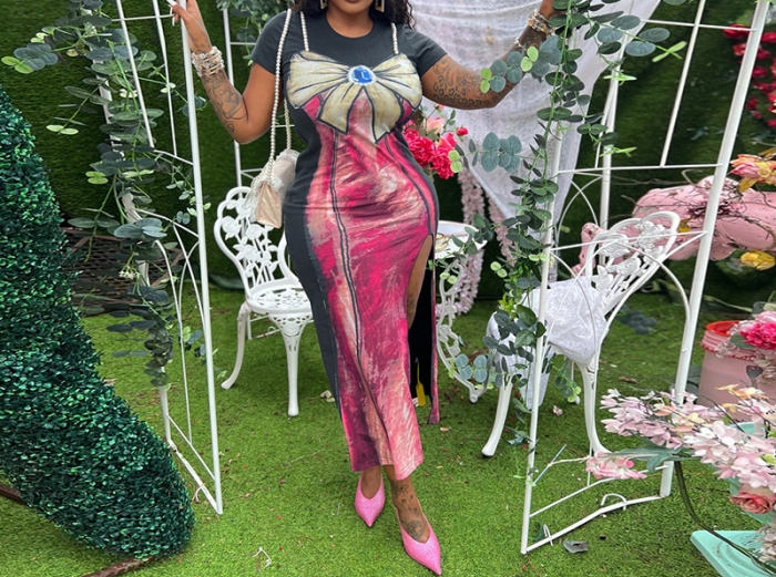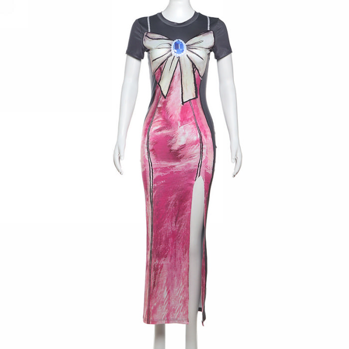 (Real Image)2024 Styles Women Printed Bow Sweet Split Sexy Spicy Bodycon DressSKU: #CF83351-1