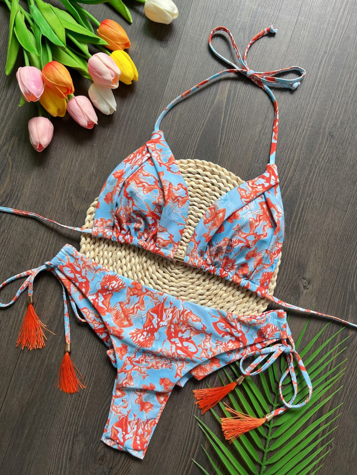 (Real Image)2024 Styles Women Printed Fringe Bikini SetSKU: #CF89040-1