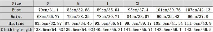 | Size | Bust | Waist | Hips |