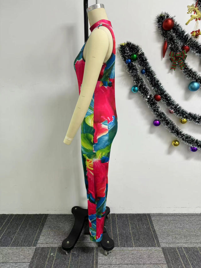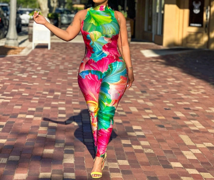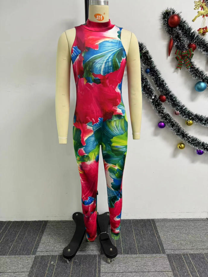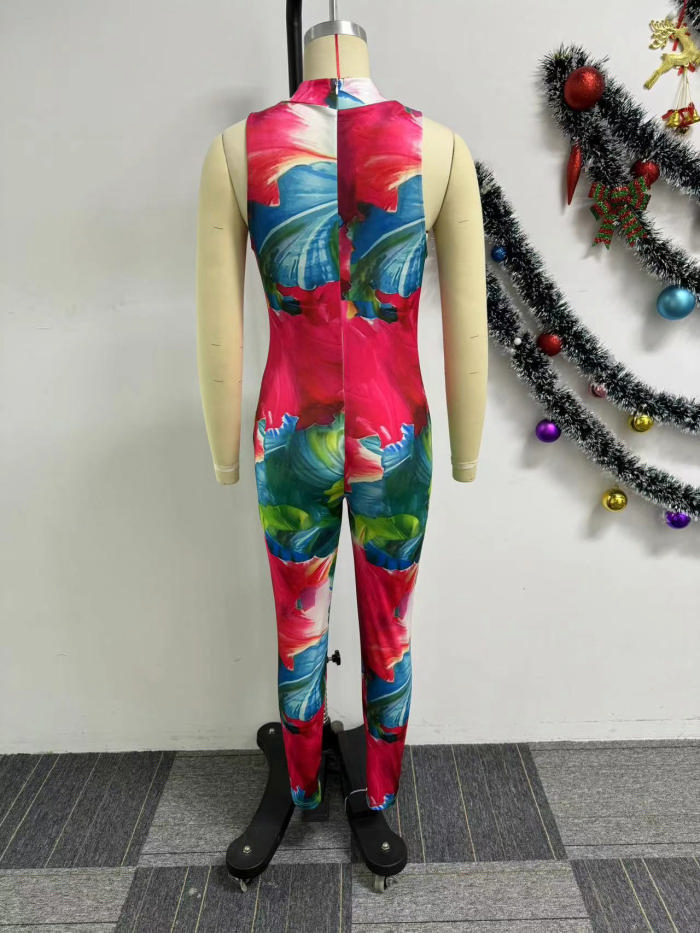 (Real Image)2024 Styles Women Printed Stretchy Sleeveless Bodycon JumpsuitSKU: #XF27493-1