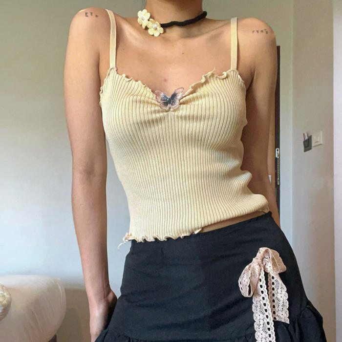 (Real Image)2024 Styles Women Pure Desire Sexy Spicy Niche Open-Work Tie-Back Bow Sleeveless Halter Top, Versatile StyleSKU: #CF76144-1