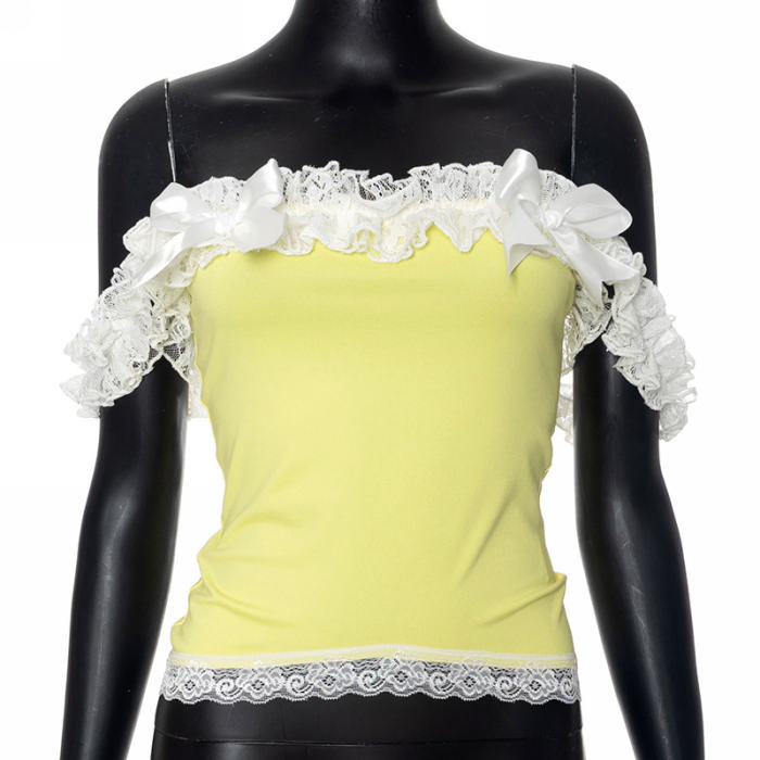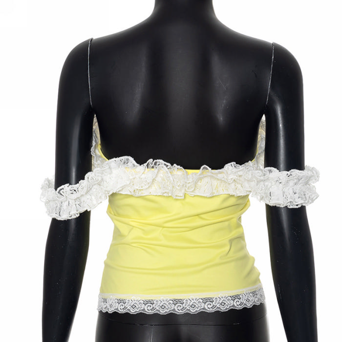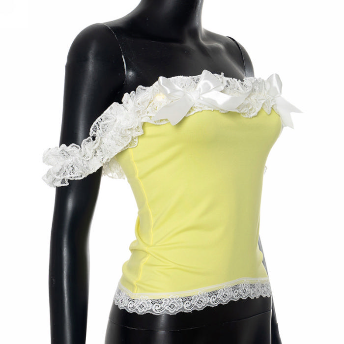 (Real Image)2024 Styles Women Pure Desire Style Lace Trim Off-Shoulder Sleeveless Cropped TopSKU: #CF76159-1