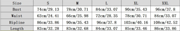| Size | Bust | Waist | Hips |