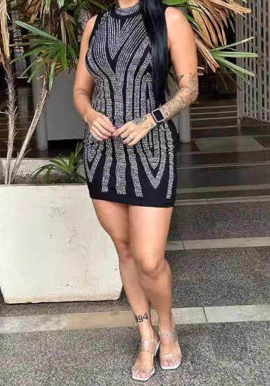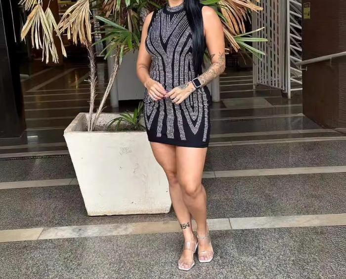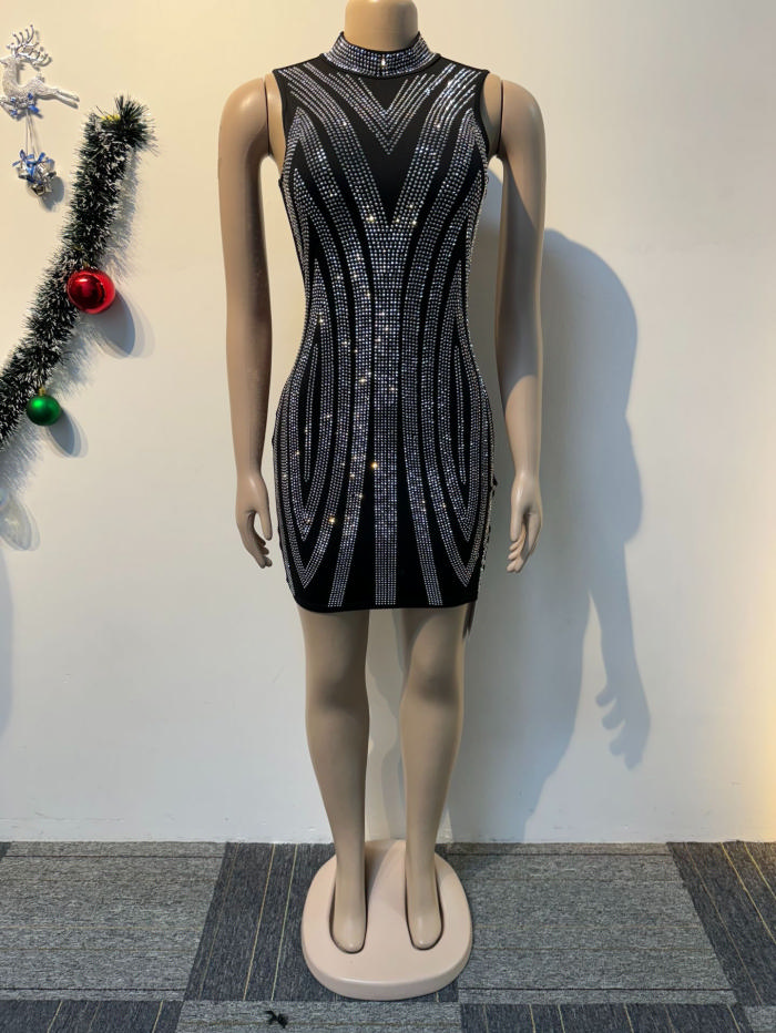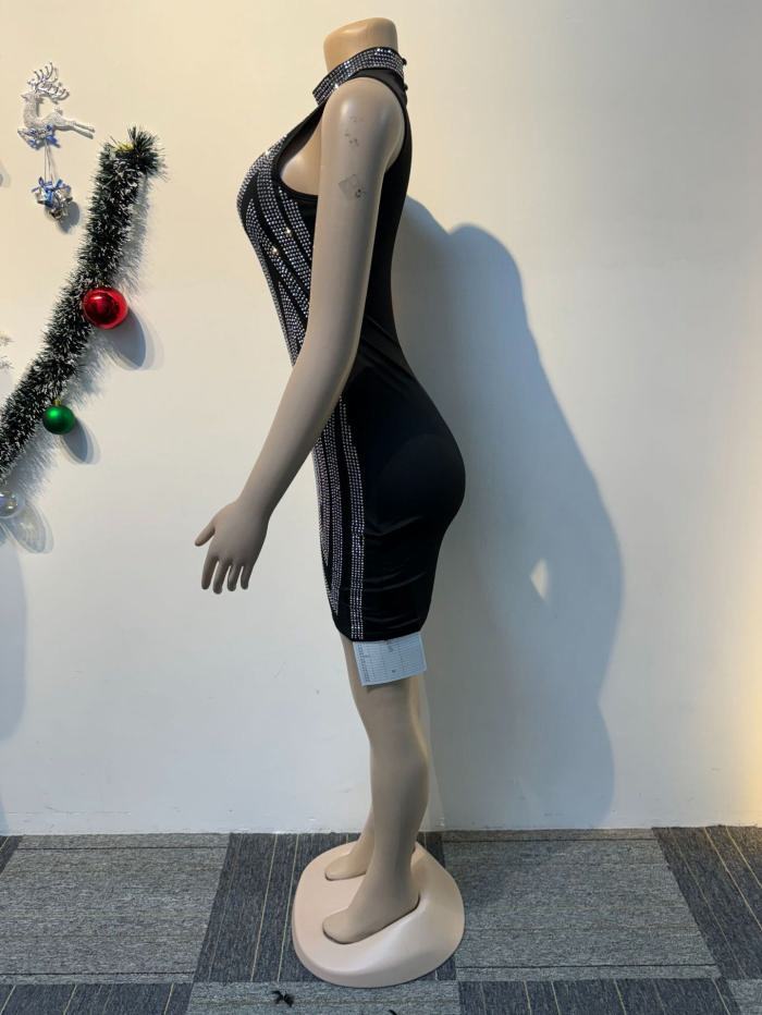 (Real Image)2024 Styles Women Rhinestone-Embellished Bodycon Mini DressSKU: #XF27475-1