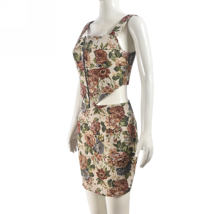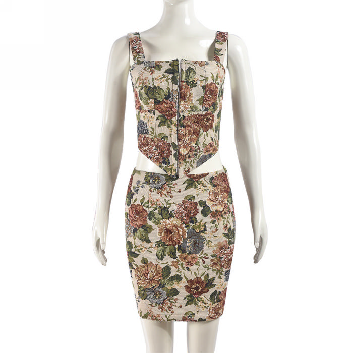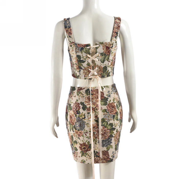(Real Image)2024 Styles Women Royal Vintage-Inspired Brocade Crop Top and Skirt Set with Halter and Waist-Tie DetailSKU: #CF59831-1