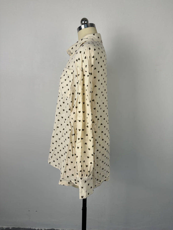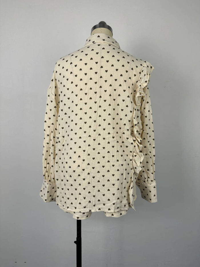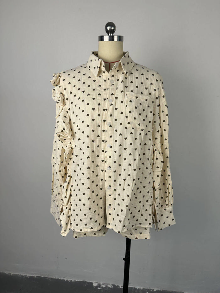 (Real Image)2024 Styles Women Ruffle Heart Print Shirt with Wide-Leg Shorts Casual SetSKU: #CF91048-1