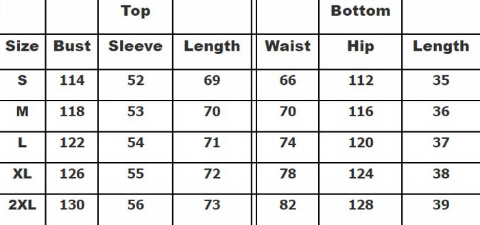 | Size | Bust | Waist | Hips |