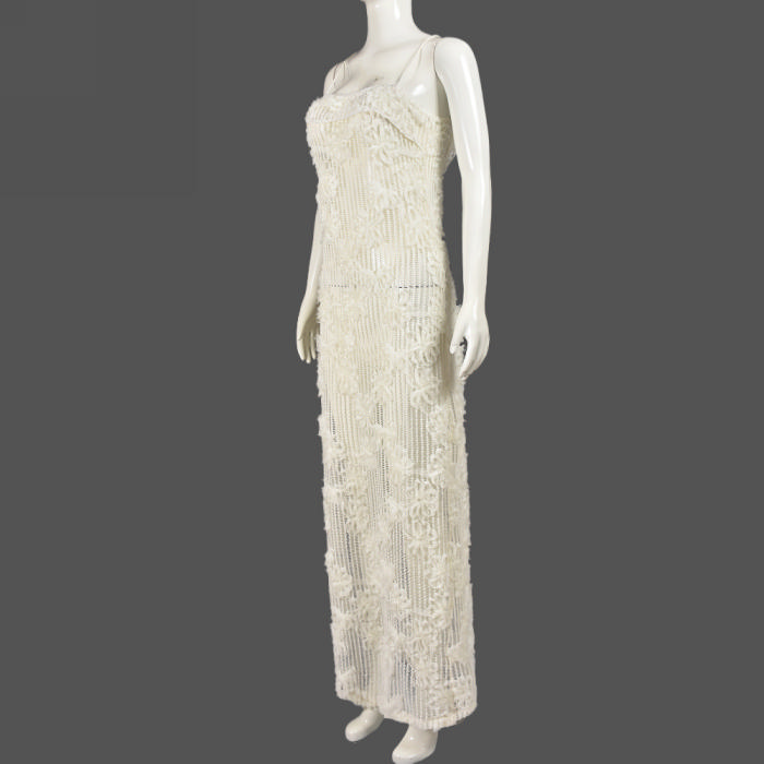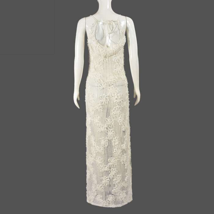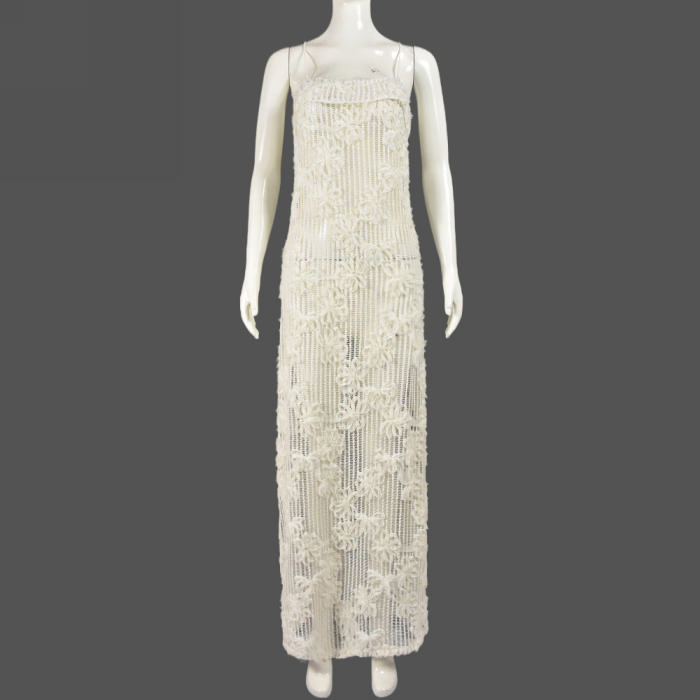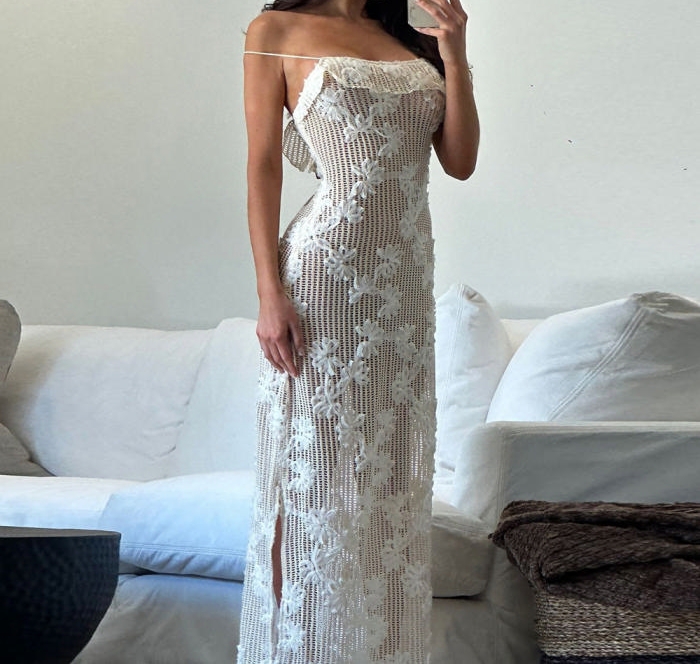 (Real Image)2024 Styles Women Seductive Elegance: Sheer Body-Con Strappy Dress with Delicate Floral OpenworkSKU: #CF59943-1