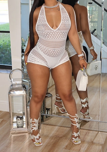 (Real Image)2024 Styles Women Seductive Sheer Lace Embroidered Bodycon Bootcut Jumpsuit with a Booty-Lifting DesignSKU: #CF83388-1
