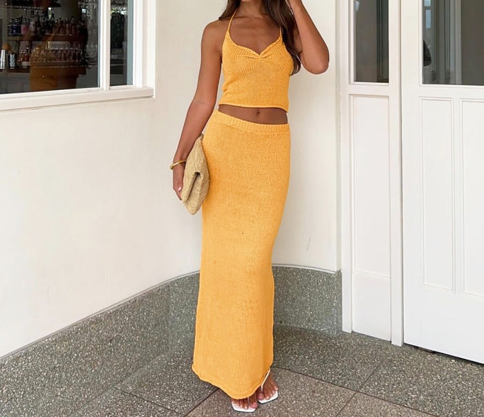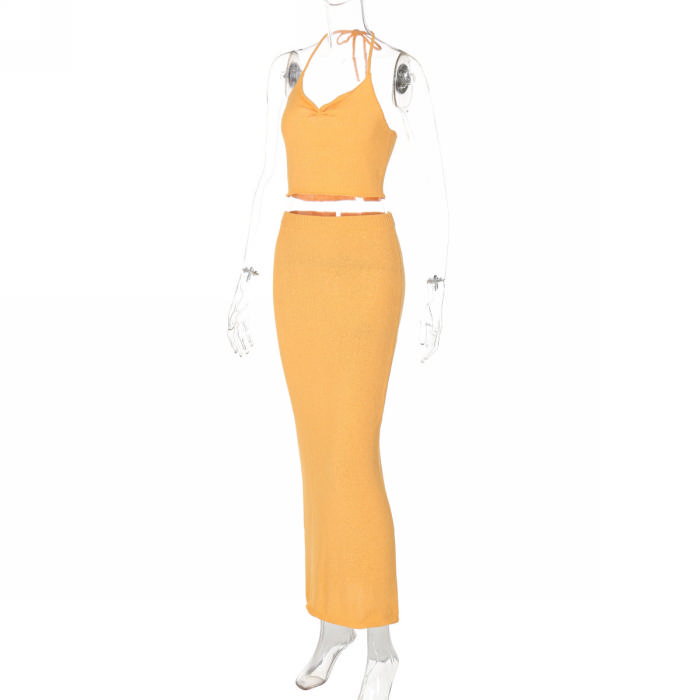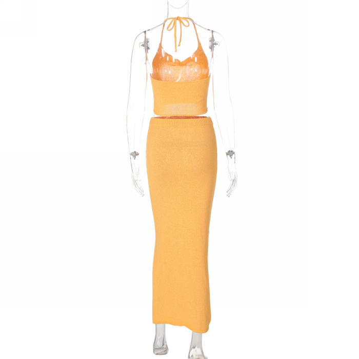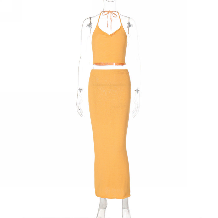 (Real Image)2024 Styles Women Sensual Backless Tied Crop Top and Slim Skirt SetSKU: #CF88301-1