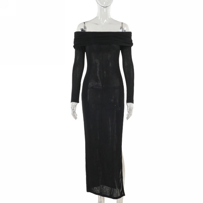 (Real Image)2024 Styles Women Sensual Body-Conscious Off-Shoulder Ring-Detail DressSKU: #XF92915-1