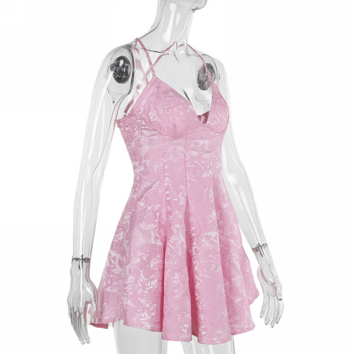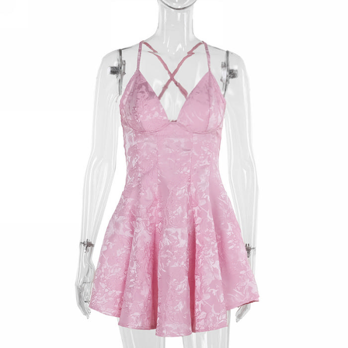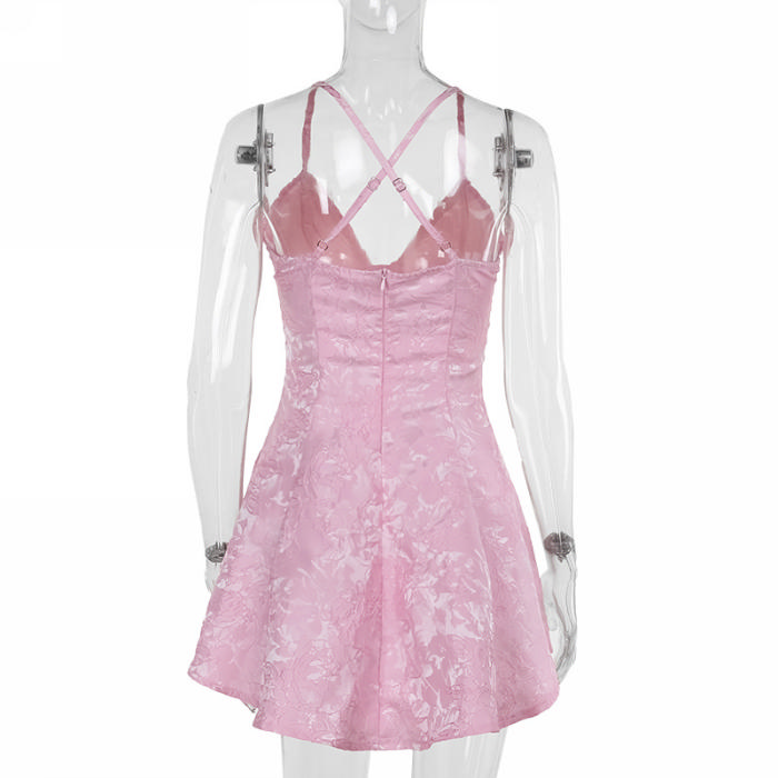 (Real Image)2024 Styles Women Sensual Body-Hugging Jacquard Deep V-Neck A-Line DressSKU: #XF92932-1