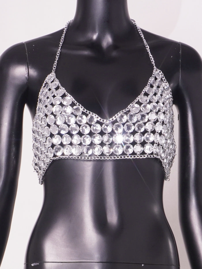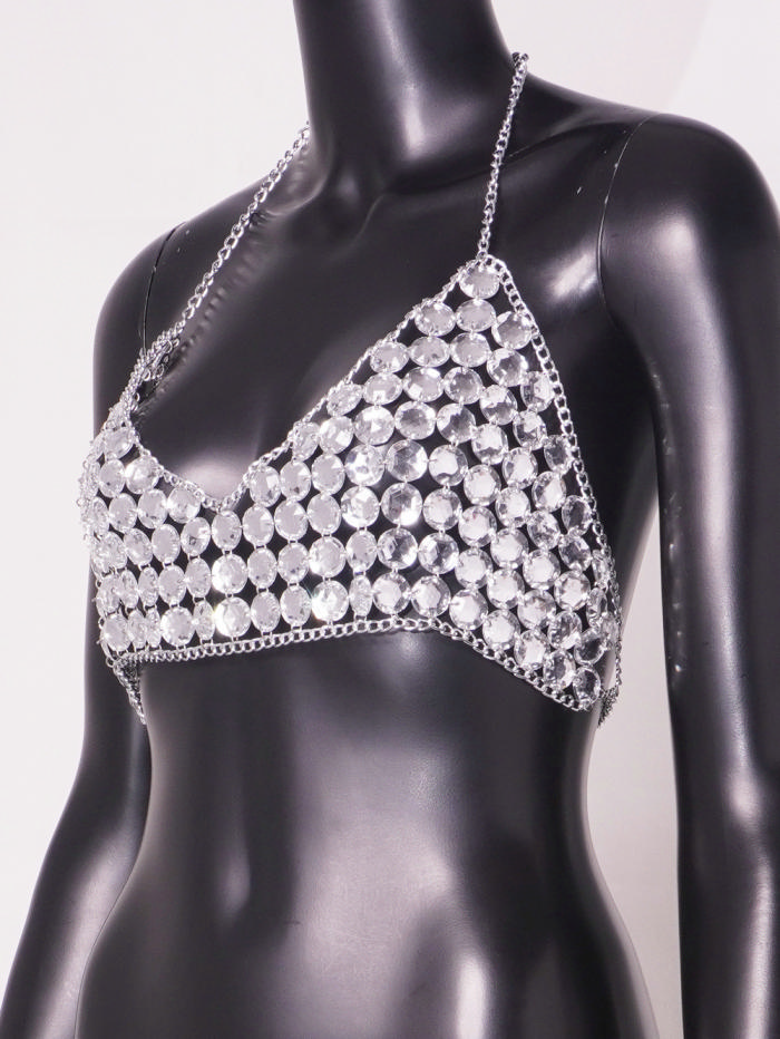 (Real Image)2024 Styles Women Sexy Acrylic Sequin Crystal Pendant Spliced Metal Chain & Fashion Hollow Body ChainSKU: #CF90140-1