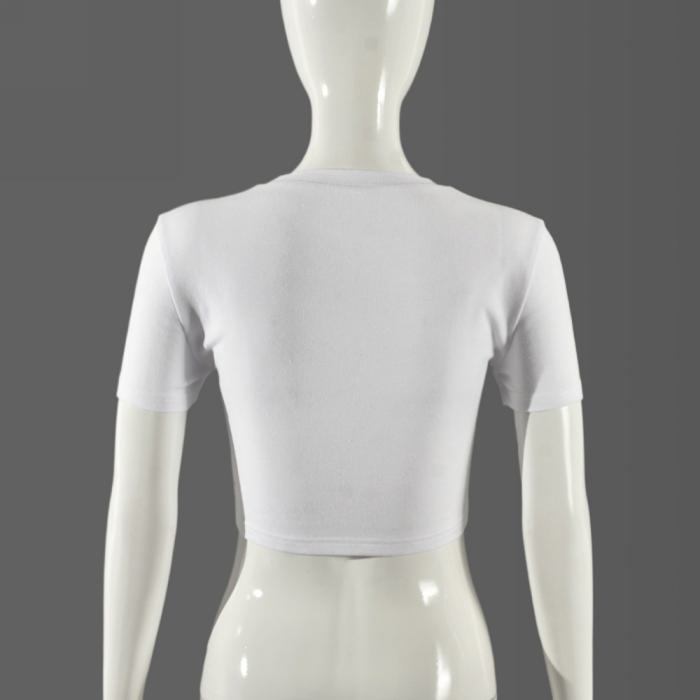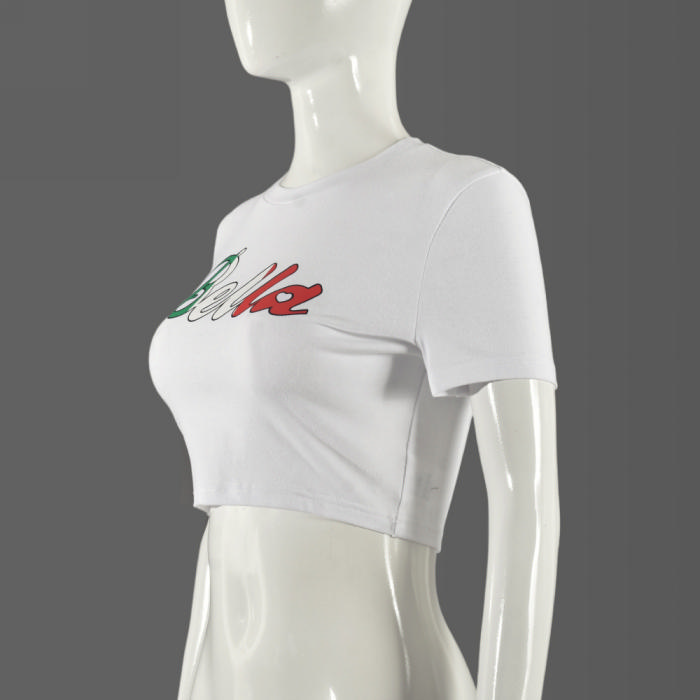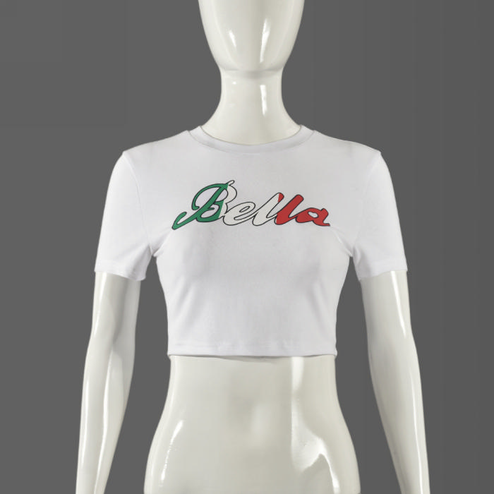 (Real Image)2024 Styles Women Sexy Crop Top with Rubberized Lettering on Short Sleeve TeeSKU: #CF59882-1