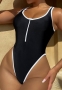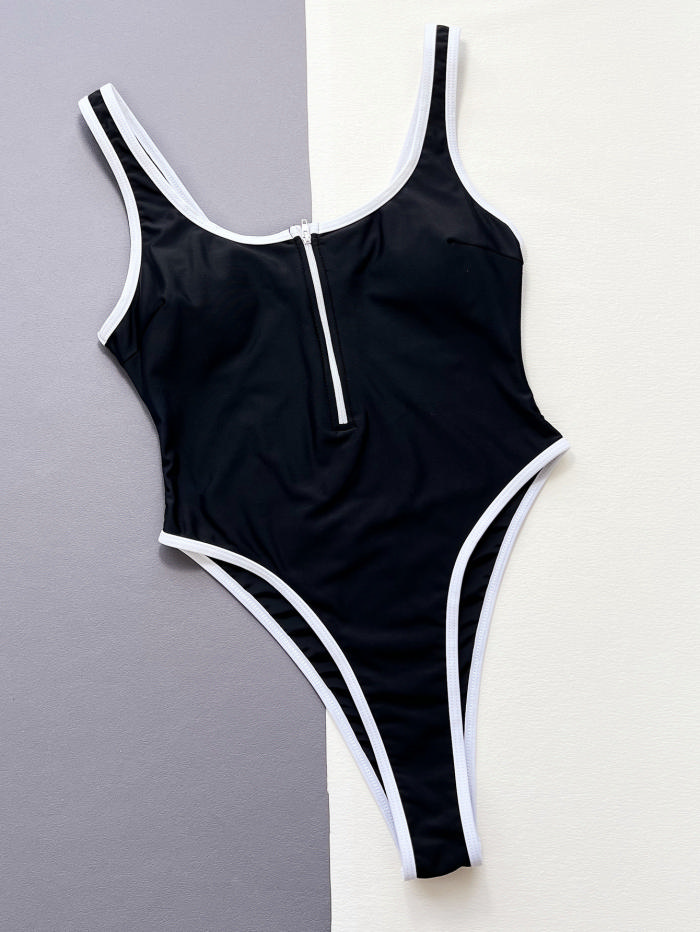 (Real Image)2024 Styles Women Sexy&Fashion Sprint/Summer TikTok&Instagram Black Front Zipper One Piece SwimwearSKU: #CF55259-1