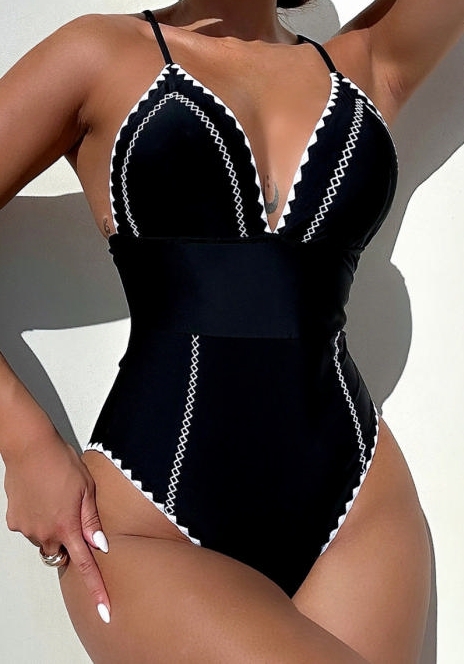 (Real Image)2024 Styles Women Sexy&Fashion Sprint/Summer TikTok&Instagram Black Strap One Piece SwimwearSKU: #CF55230-1