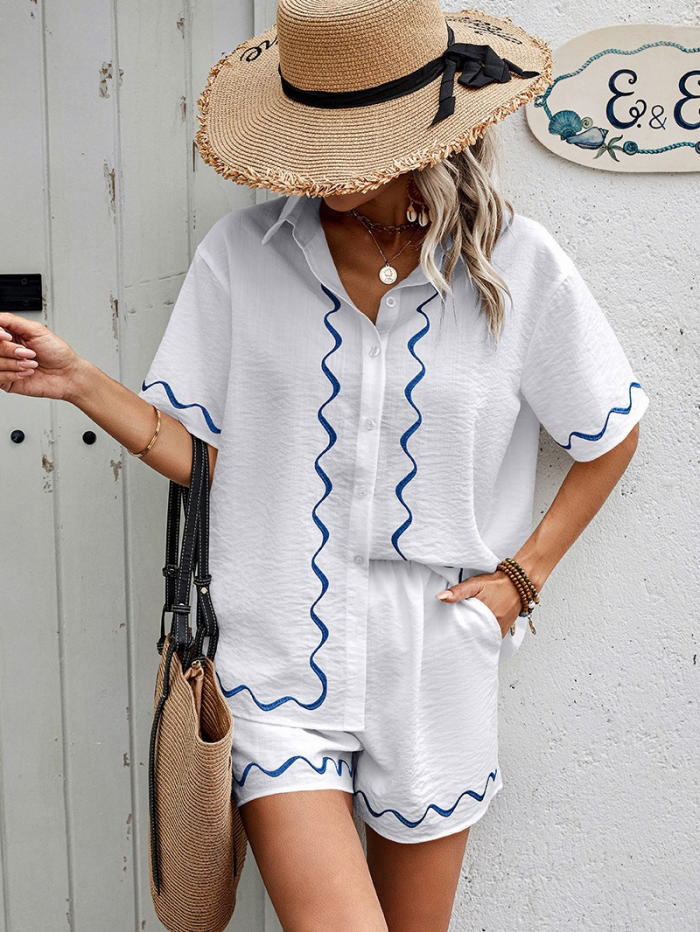 (Real Image)2024 Styles Women Sexy&Fashion Sprint/Summer TikTok&Instagram Bohemian Styles Short Two Piece SuitSKU: #CF65193-1