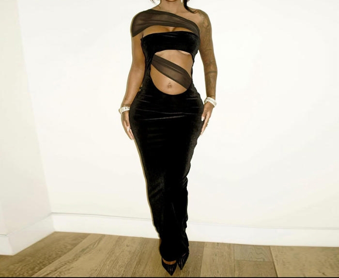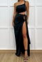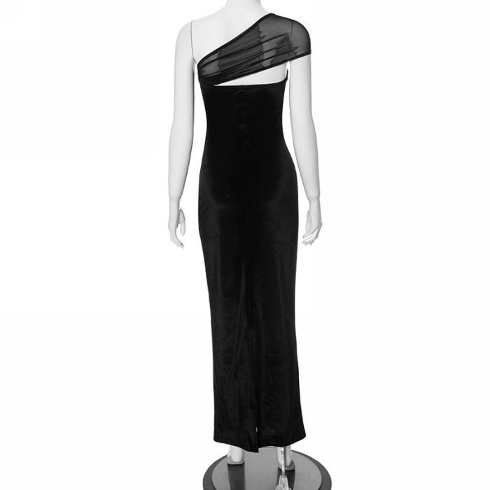 (Real Image)2024 Styles Women Sexy&Fashion Sprint/Summer TikTok&Instagram Cut Out Black Mesh Maxi DressSKU: #CF69040-1