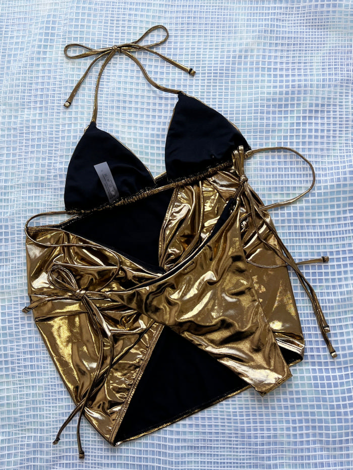 (Real Image)2024 Styles Women Sexy&Fashion Sprint/Summer TikTok&Instagram Golden 3 Piece SwimsuitsSKU: #CF55222-1