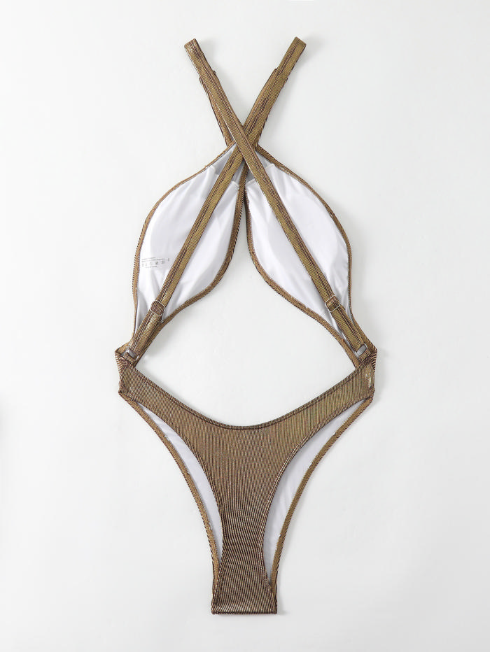 (Real Image)2024 Styles Women Sexy&Fashion Sprint/Summer TikTok&Instagram Golden Bandage One Piece SwimwearSKU: #CF31211-1