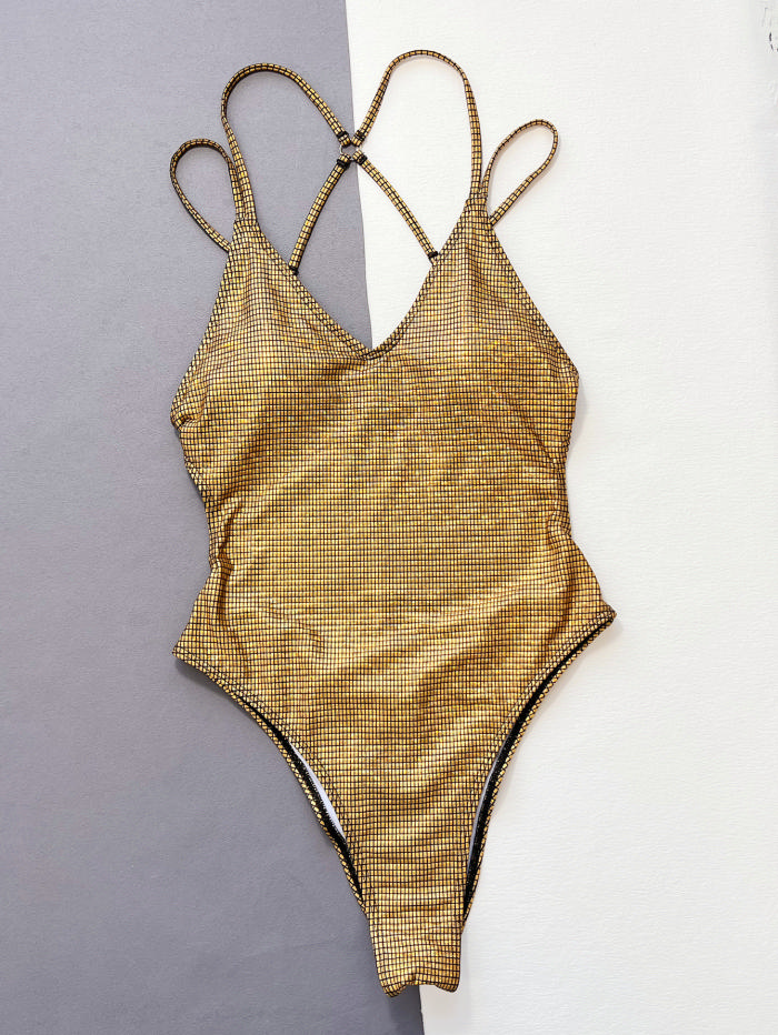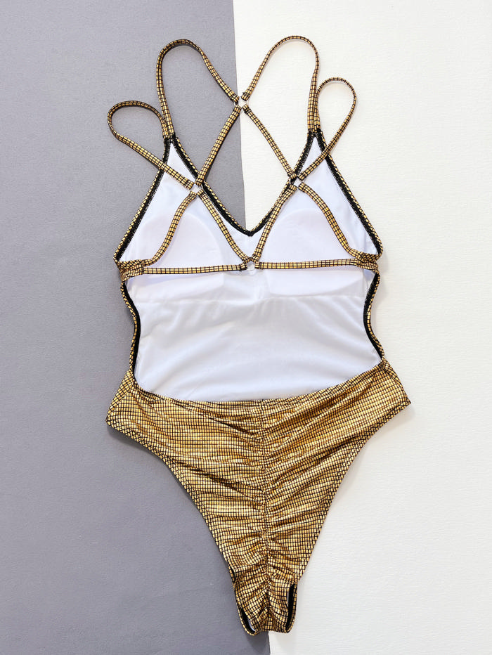 (Real Image)2024 Styles Women Sexy&Fashion Sprint/Summer TikTok&Instagram Golden One Piece SwimwearSKU: #CF55238-1