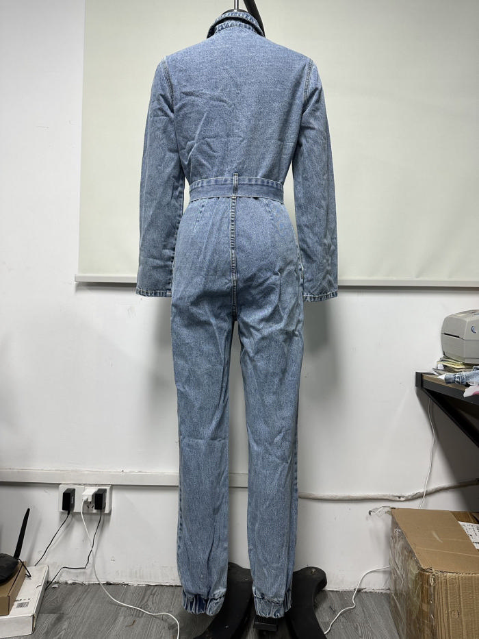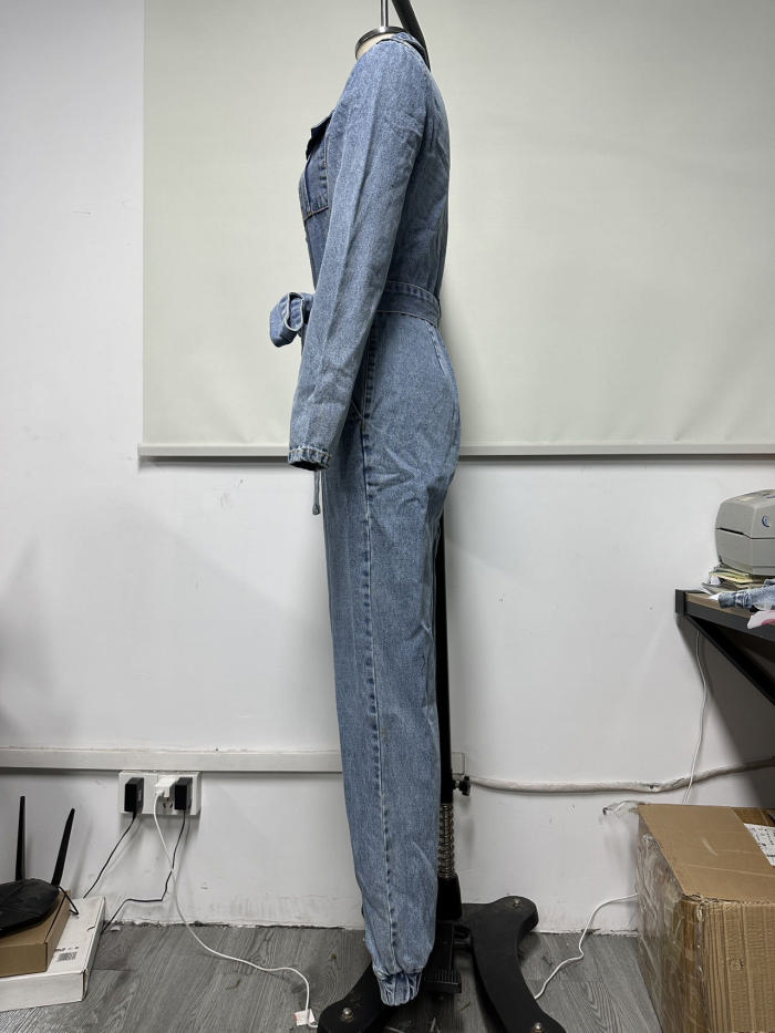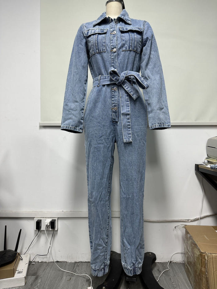 (Real Image)2024 Styles Women Sexy&Fashion Sprint/Summer TikTok&Instagram Jeans Waist Tie JumpsuitSKU: #CF65171-1