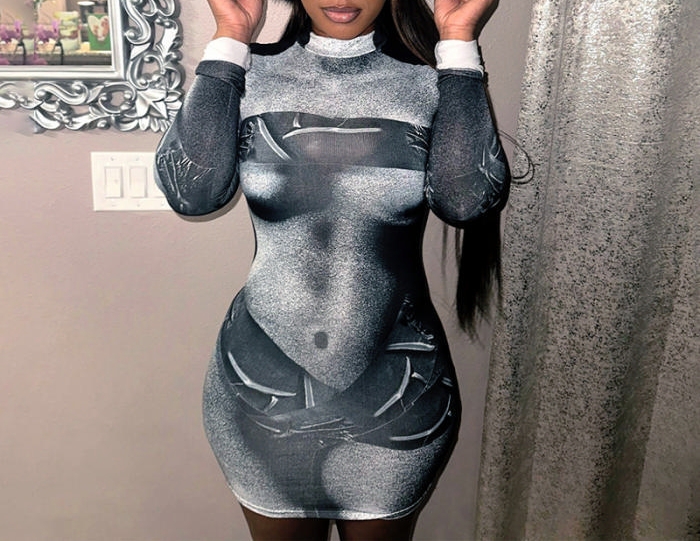 (Real Image)2024 Styles Women Sexy&Fashion Sprint/Summer TikTok&Instagram Long Sleeve Mini DressSKU: #CF69025-1