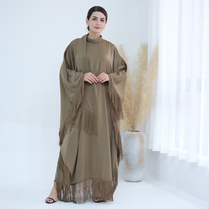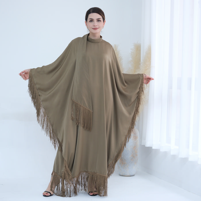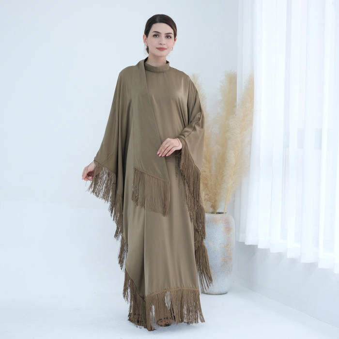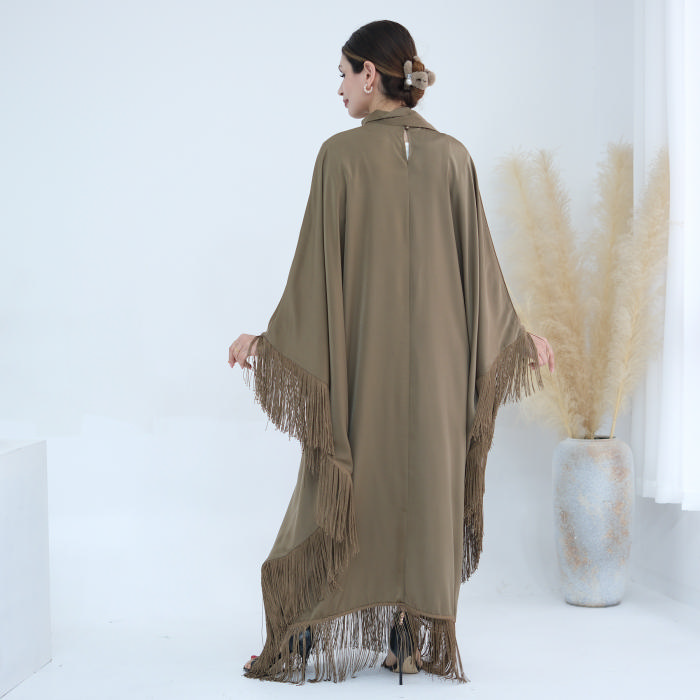 (Real Image)2024 Styles Women Sexy&Fashion Sprint/Summer TikTok&Instagram Muslim Tassel Long Sleeve Maxi DressSKU: #CF99001-5