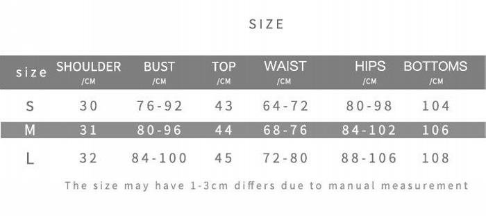 | Size | Bust | Waist | Hips |