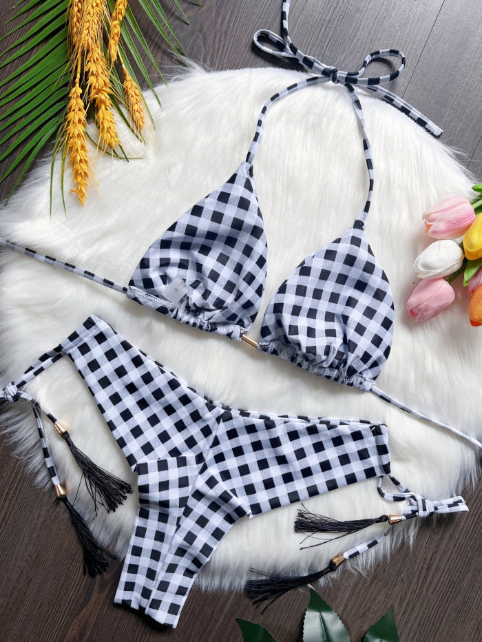 (Real Image)2024 Styles Women Sexy&Fashion Sprint/Summer TikTok&Instagram Plaid Bikini SetSKU: #CF35157-2