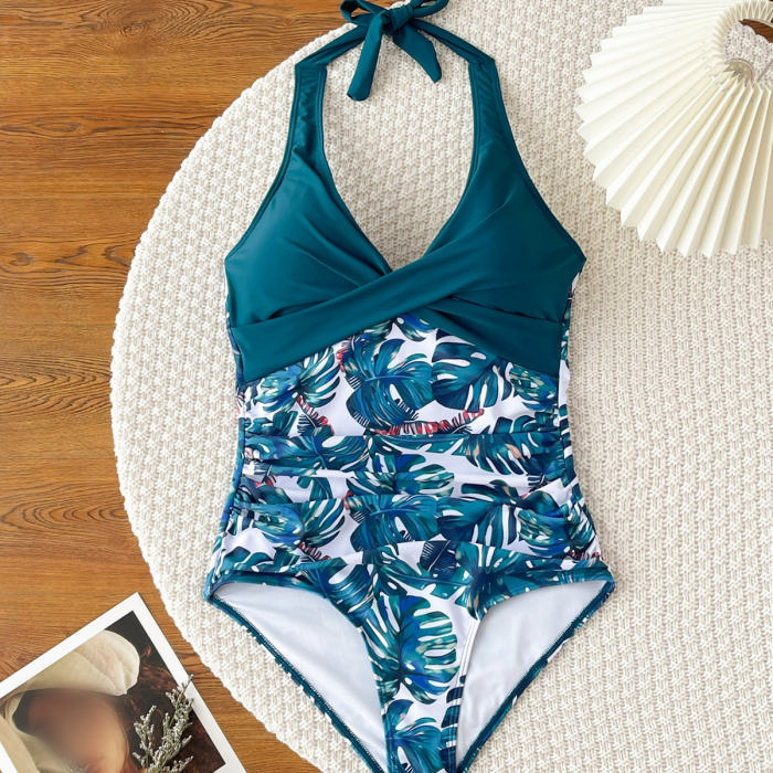 (Real Image)2024 Styles Women Sexy&Fashion Sprint/Summer TikTok&Instagram Print Halter One Piece SwimwearSKU: #CF56123-1