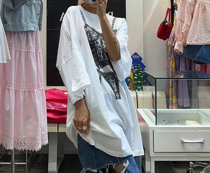 (Real Image)2024 Styles Women Sexy&Fashion Sprint/Summer TikTok&Instagram Print Loose Short Sleeve Midi DressSKU: #CF69059-1