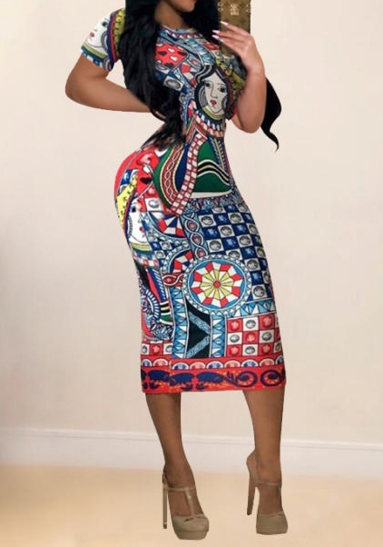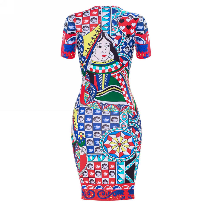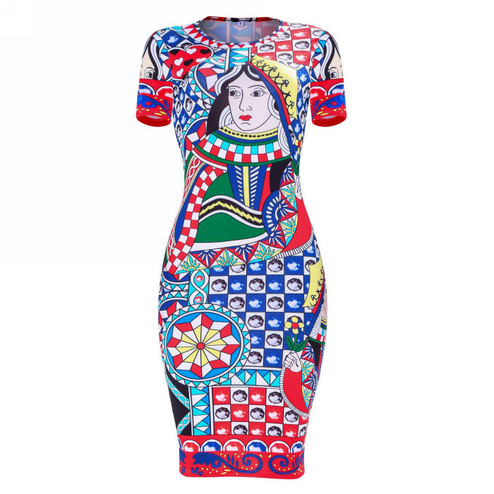 (Real Image)2024 Styles Women Sexy&Fashion Sprint/Summer TikTok&Instagram Print Poker Short Sleeve Maxi DressSKU: #CF97015-10
