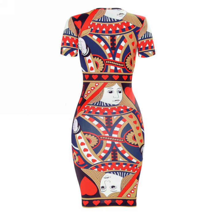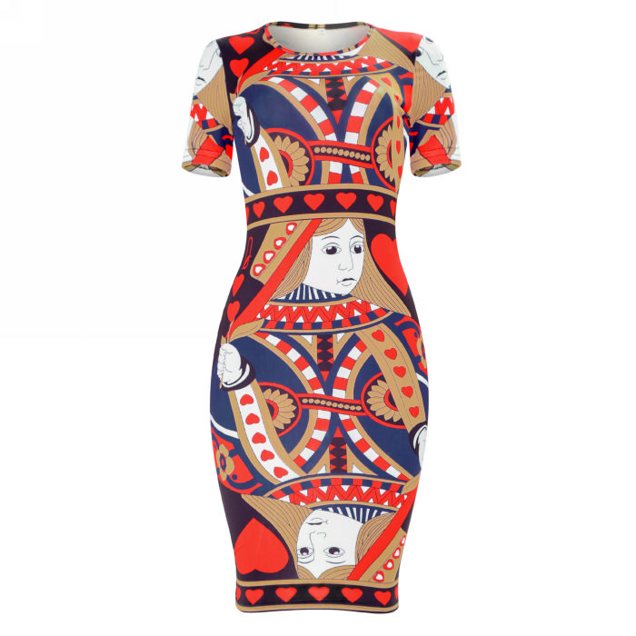 (Real Image)2024 Styles Women Sexy&Fashion Sprint/Summer TikTok&Instagram Print Poker Short Sleeve Maxi DressSKU: #CF97015-7