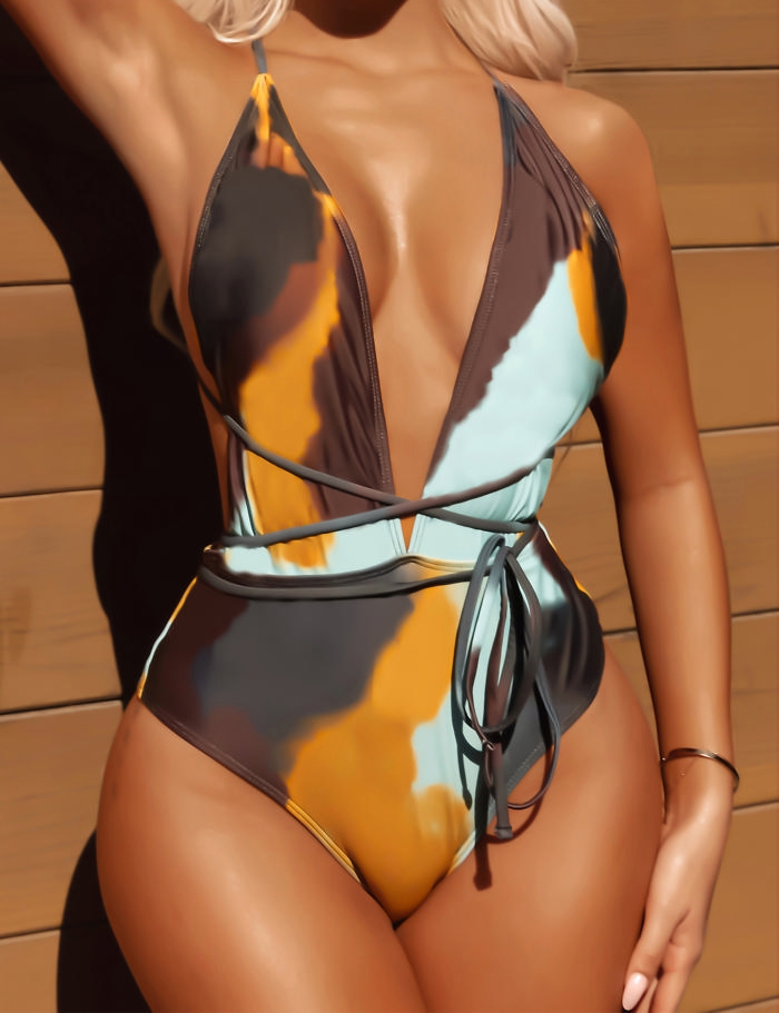 (Real Image)2024 Styles Women Sexy&Fashion Sprint/Summer TikTok&Instagram Print Tie One Piece SwimwearSKU: #CF31217-1