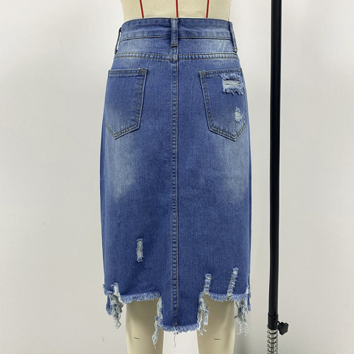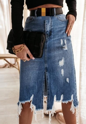 (Real Image)2024 Styles Women Sexy&Fashion Sprint/Summer TikTok&Instagram Ripped Jeans Long Midi SkirtsSKU: #CF98040-1