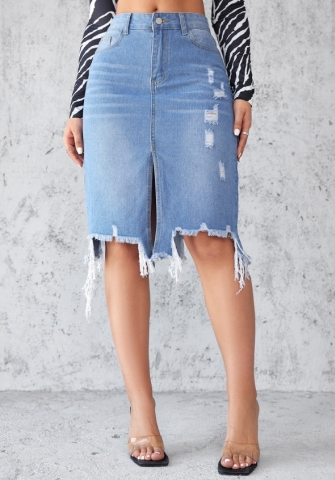 (Real Image)2024 Styles Women Sexy&Fashion Sprint/Summer TikTok&Instagram Ripped Jeans Long Midi SkirtsSKU: #CF98040-3