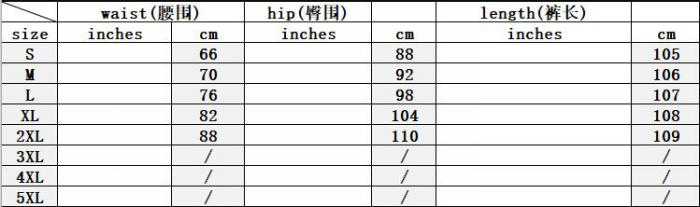 | Size | Bust | Waist | Hips |