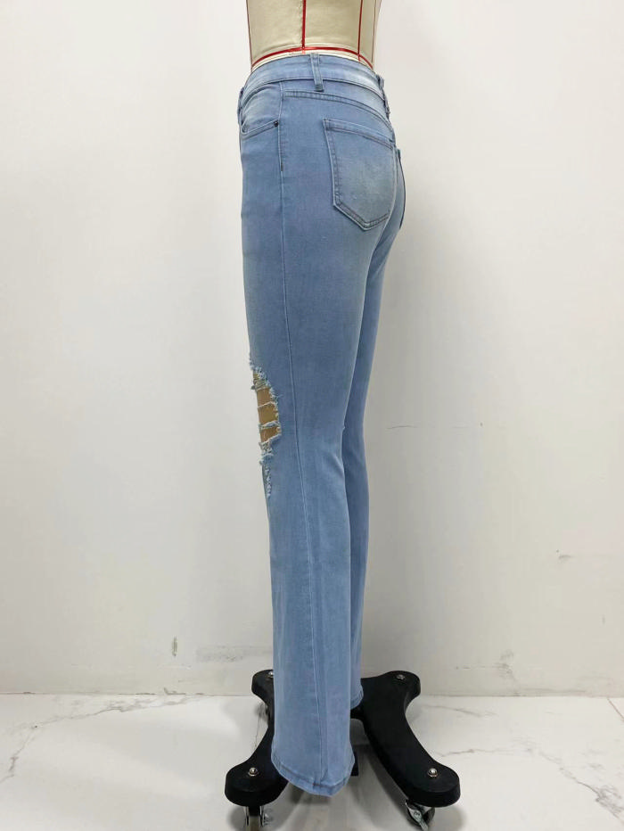 (Real Image)2024 Styles Women Sexy&Fashion Sprint/Summer TikTok&Instagram Ripped Jeans Long PantsSKU: #CF98030-1