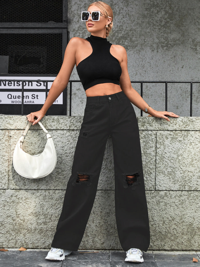 (Real Image)2024 Styles Women Sexy&Fashion Sprint/Summer TikTok&Instagram Ripped Jeans Long PantsSKU: #CF65162-1