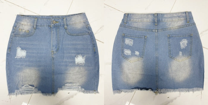 (Real Image)2024 Styles Women Sexy&Fashion Sprint/Summer TikTok&Instagram Ripped Jeans Mini SkirtsSKU: #CF98038-1