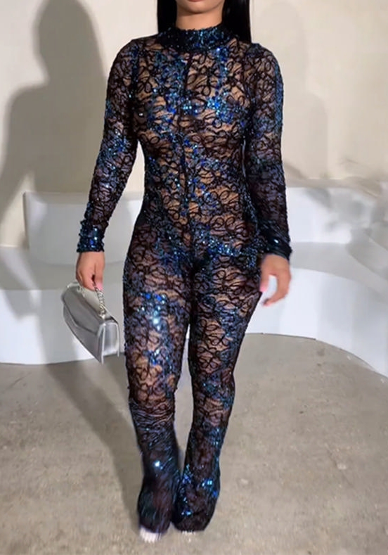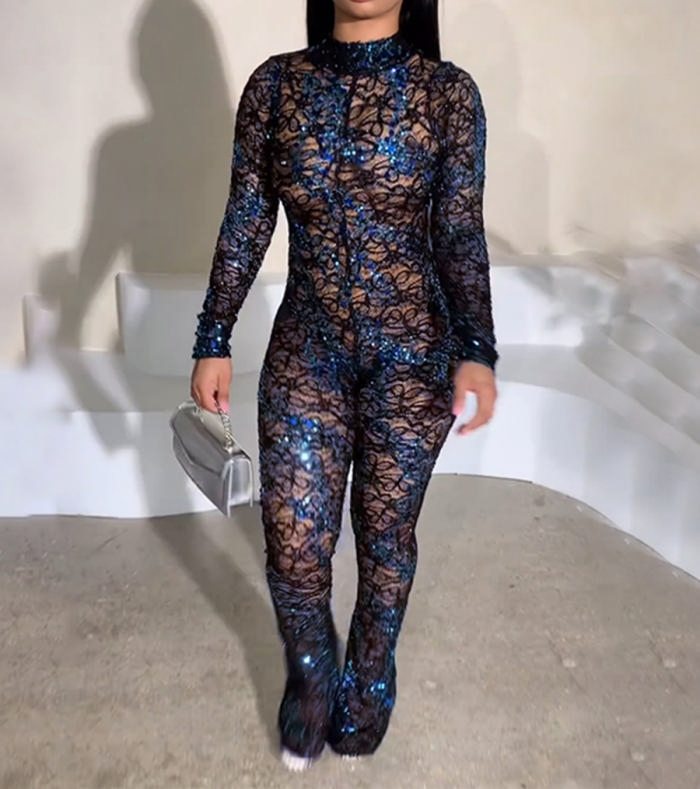(Real Image)2024 Styles Women Sexy&Fashion Sprint/Summer TikTok&Instagram Sequin Long Sleeve JumpsuitSKU: #CF69027-1