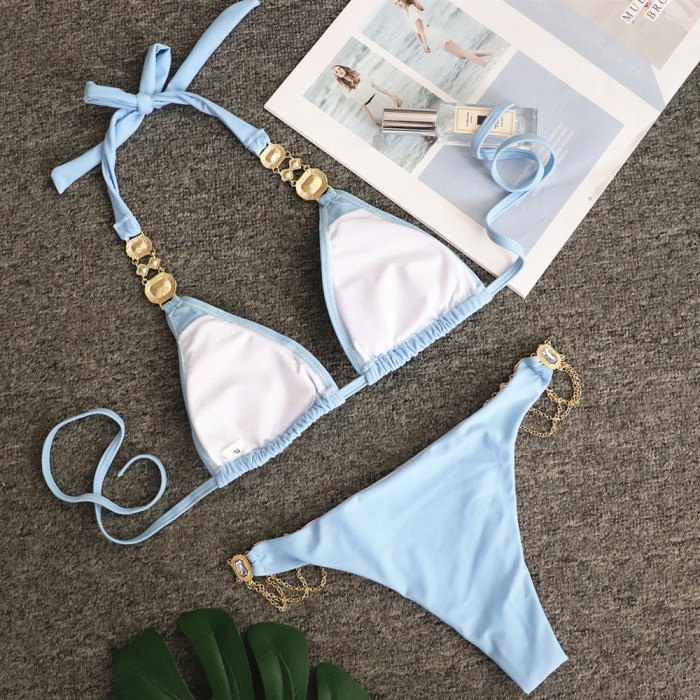 (Real Image)2024 Styles Women Sexy&Fashion Sprint/Summer TikTok&Instagram Sequin&Rhinestones Bikini SetSKU: #CF70085-5