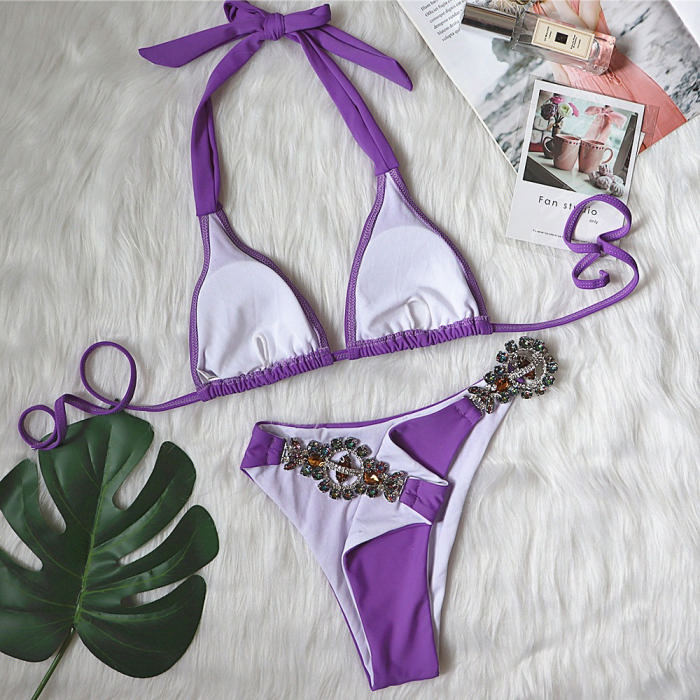 (Real Image)2024 Styles Women Sexy&Fashion Sprint/Summer TikTok&Instagram Sequin&Rhinestones Bikini SetSKU: #CF70090-2