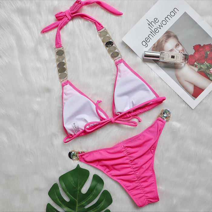 (Real Image)2024 Styles Women Sexy&Fashion Sprint/Summer TikTok&Instagram Sequin&Rhinestones Bikini SetSKU: #CF70104-7