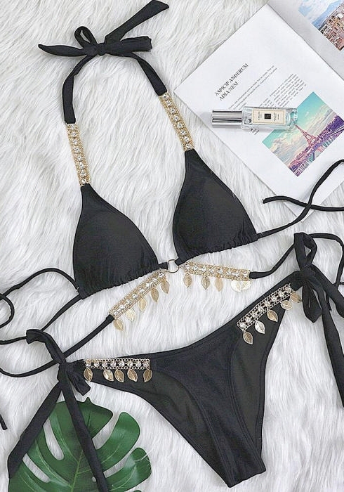 (Real Image)2024 Styles Women Sexy&Fashion Sprint/Summer TikTok&Instagram Sequin&Rhinestones Bikini SetSKU: #CF70124-2