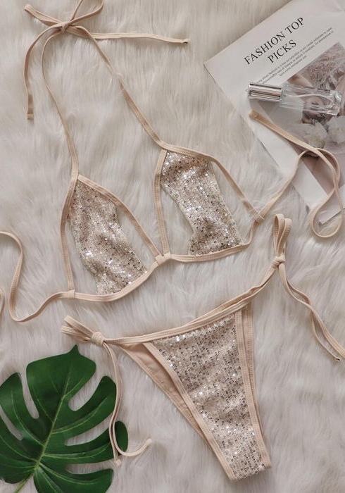 (Real Image)2024 Styles Women Sexy&Fashion Sprint/Summer TikTok&Instagram Sequin&Rhinestones Bikini SetSKU: #CF70125-2