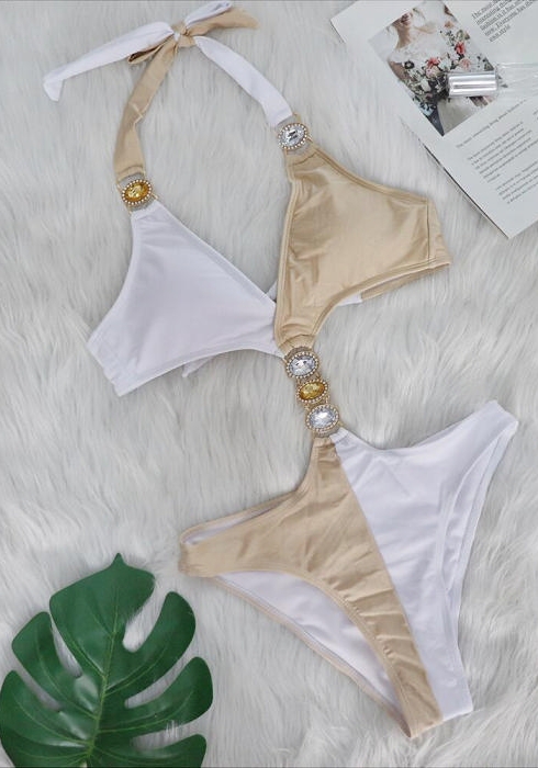 (Real Image)2024 Styles Women Sexy&Fashion Sprint/Summer TikTok&Instagram Sequin&Rhinestones One Piece SwimwearSKU: #CF70114-5