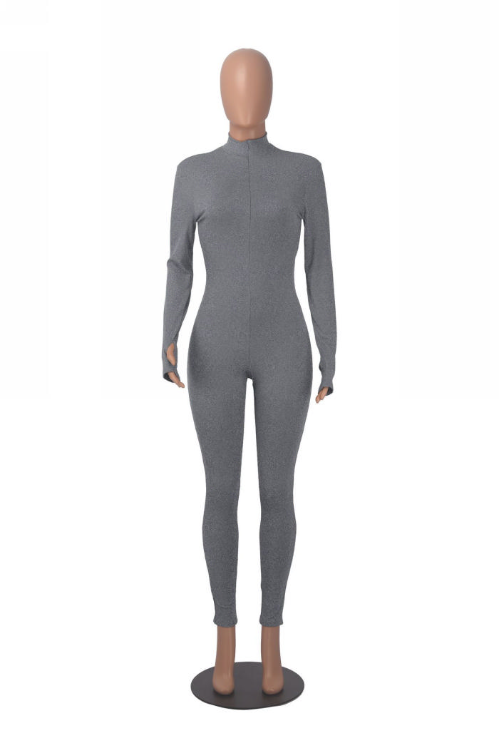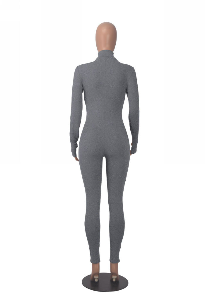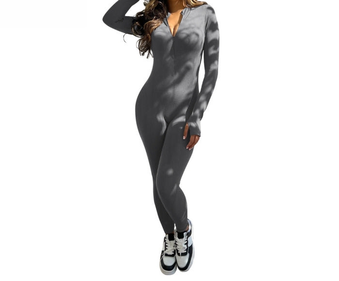 (Real Image)2024 Styles Women Sexy&Fashion Sprint/Summer TikTok&Instagram Solid Color Long Sleeve Front Zipper JumpsuitSKU: #CF97012-6